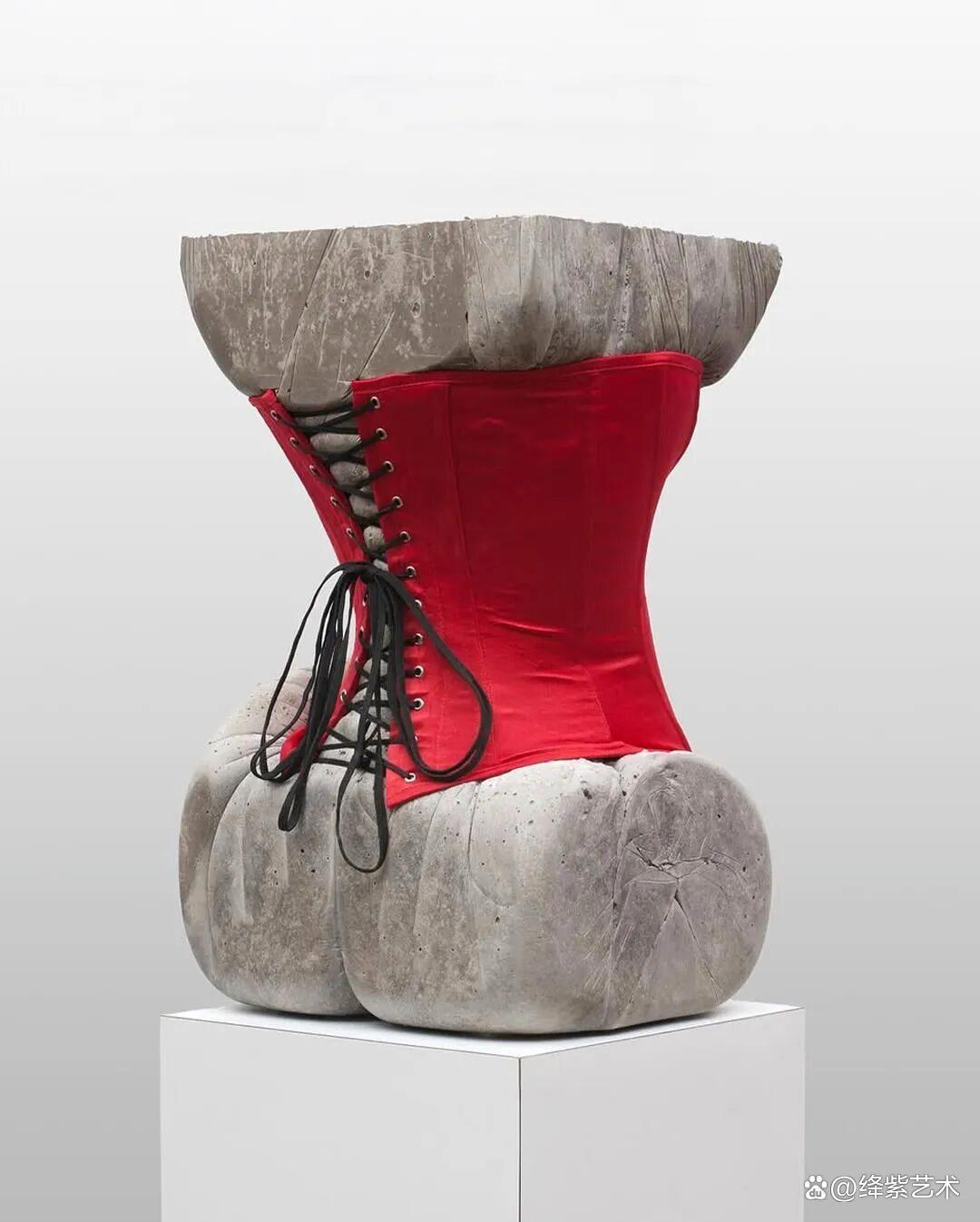 这些混凝土雕塑作品,无非是用混凝土,加上一件衣服、一根绳子、一把凳子组合制作而成,却让人从中,感受到女性专有的性感一面,进而引起人们对于束缚女性物品的关注,以及女性社会处境的讨论。